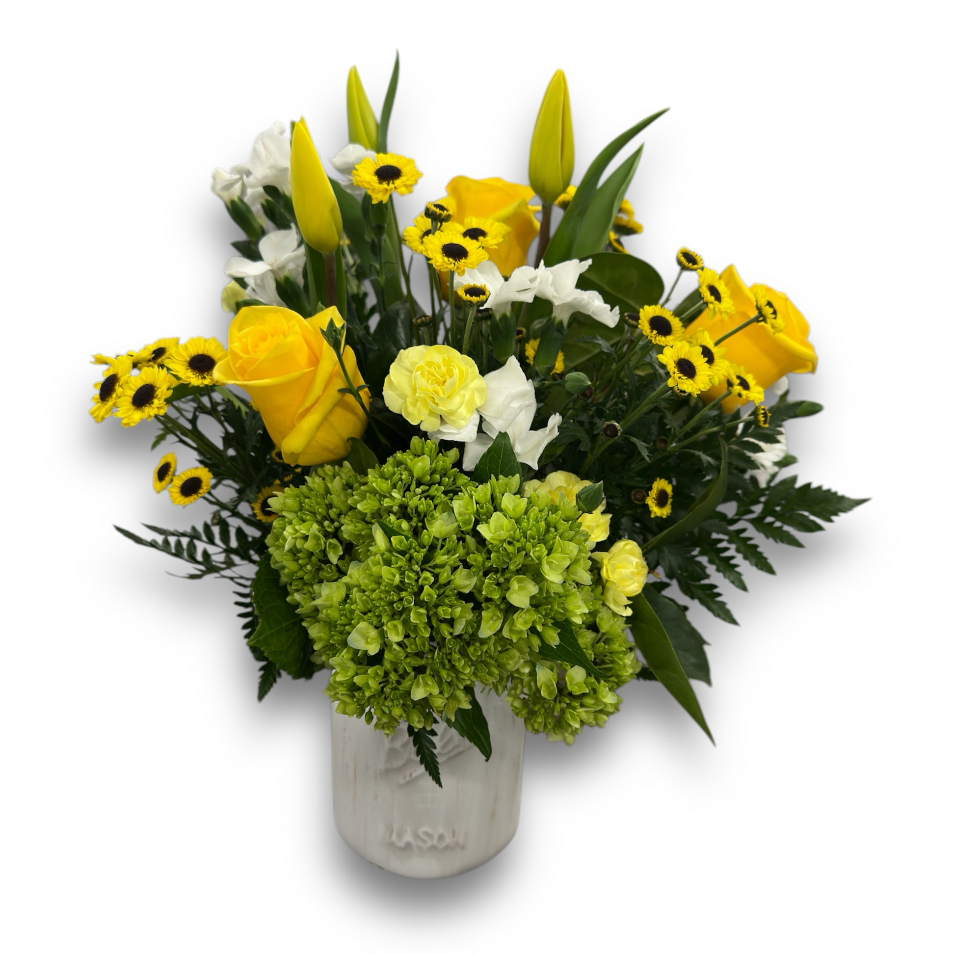 This cheerful mix of yellow blooms is sure to brighten their day. Note: Some flowers and other products pictured are subject to availability, and may be substituted for a similar item if unavailable.